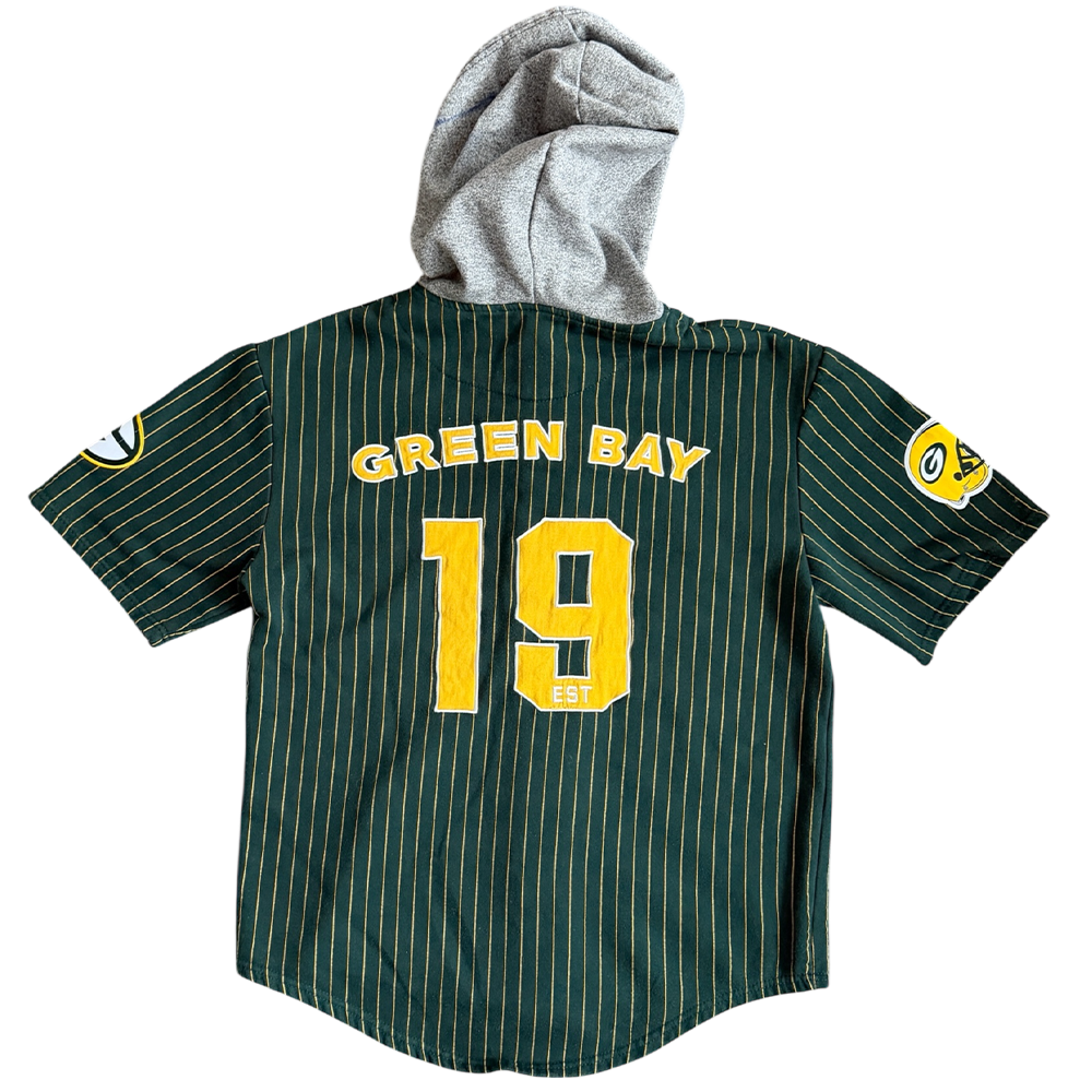 + Short sleeve hoodie original embroidered text: "Packers", gold (front), "Green Bay, 19", gold (back)