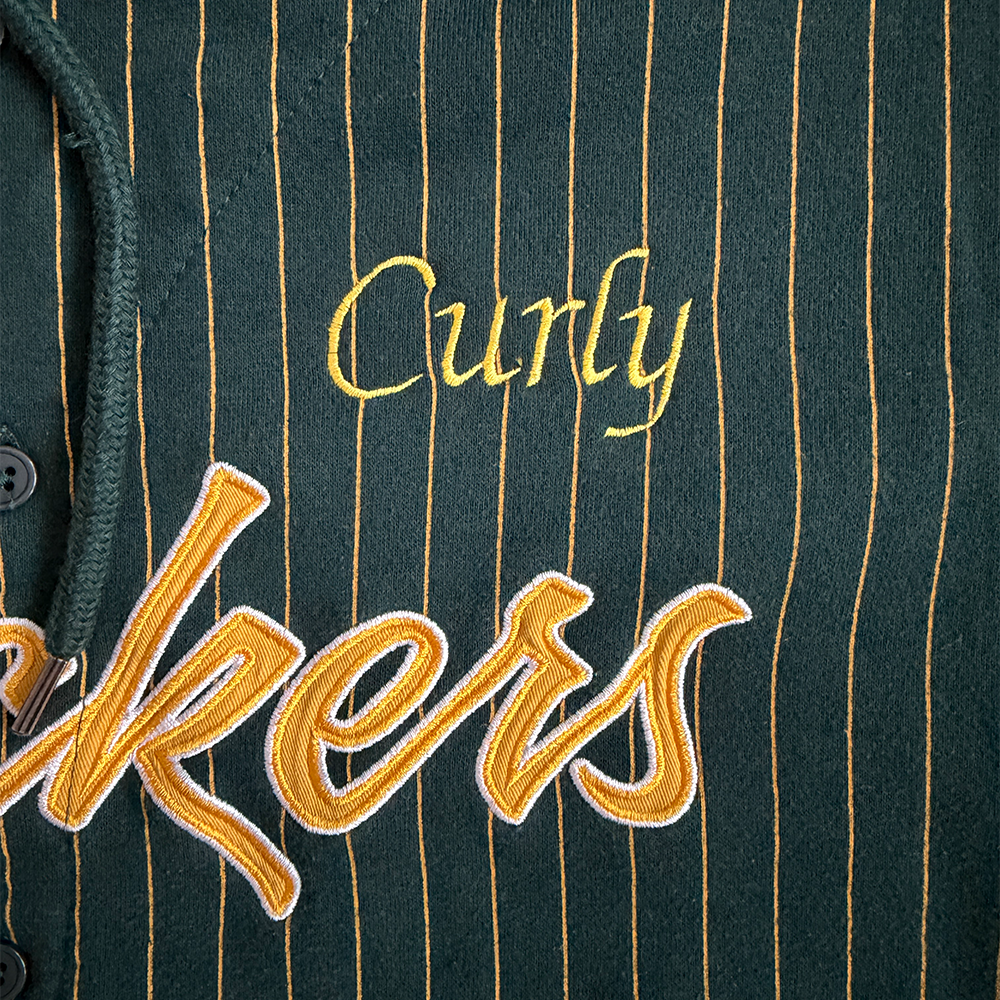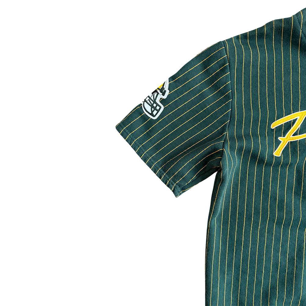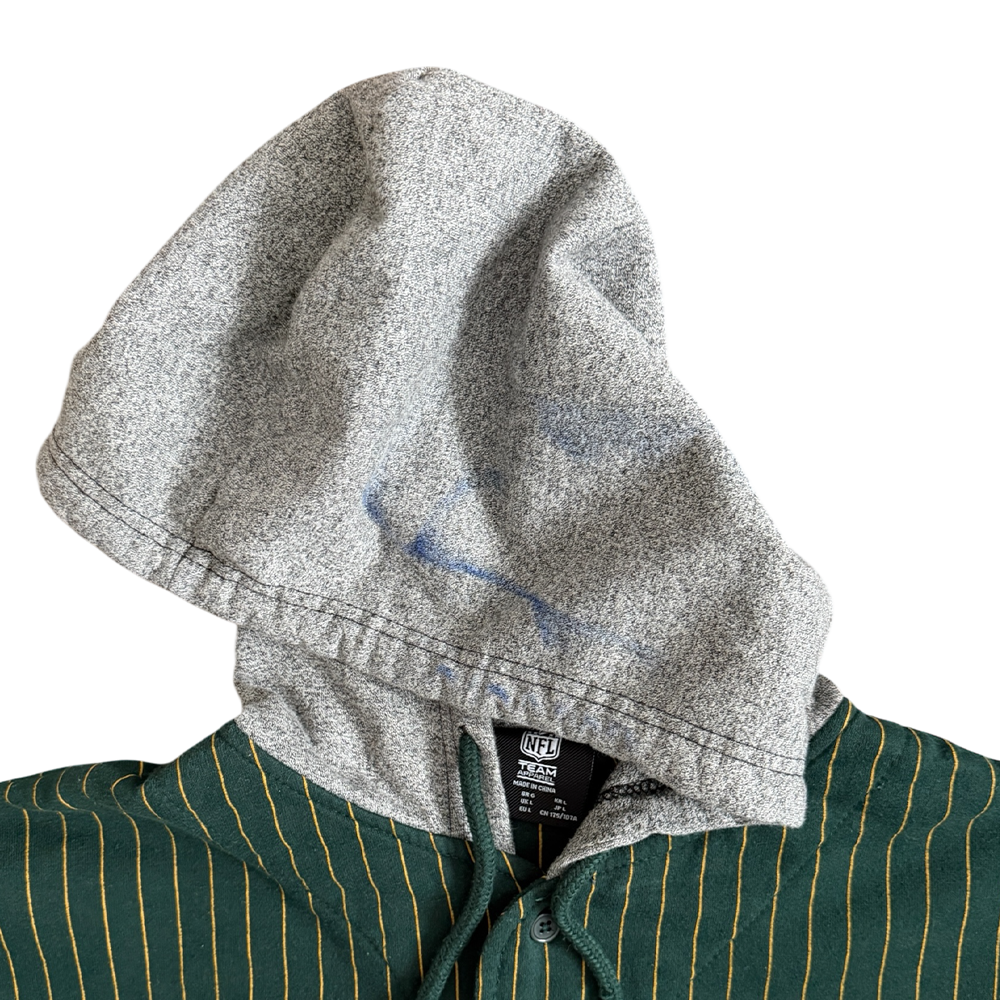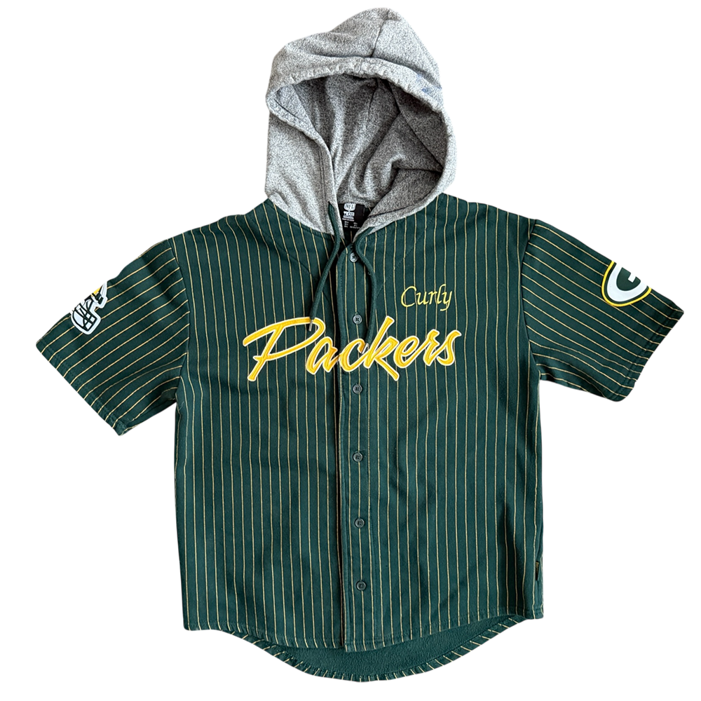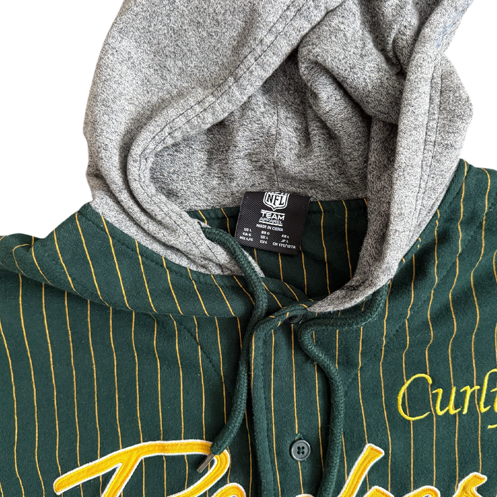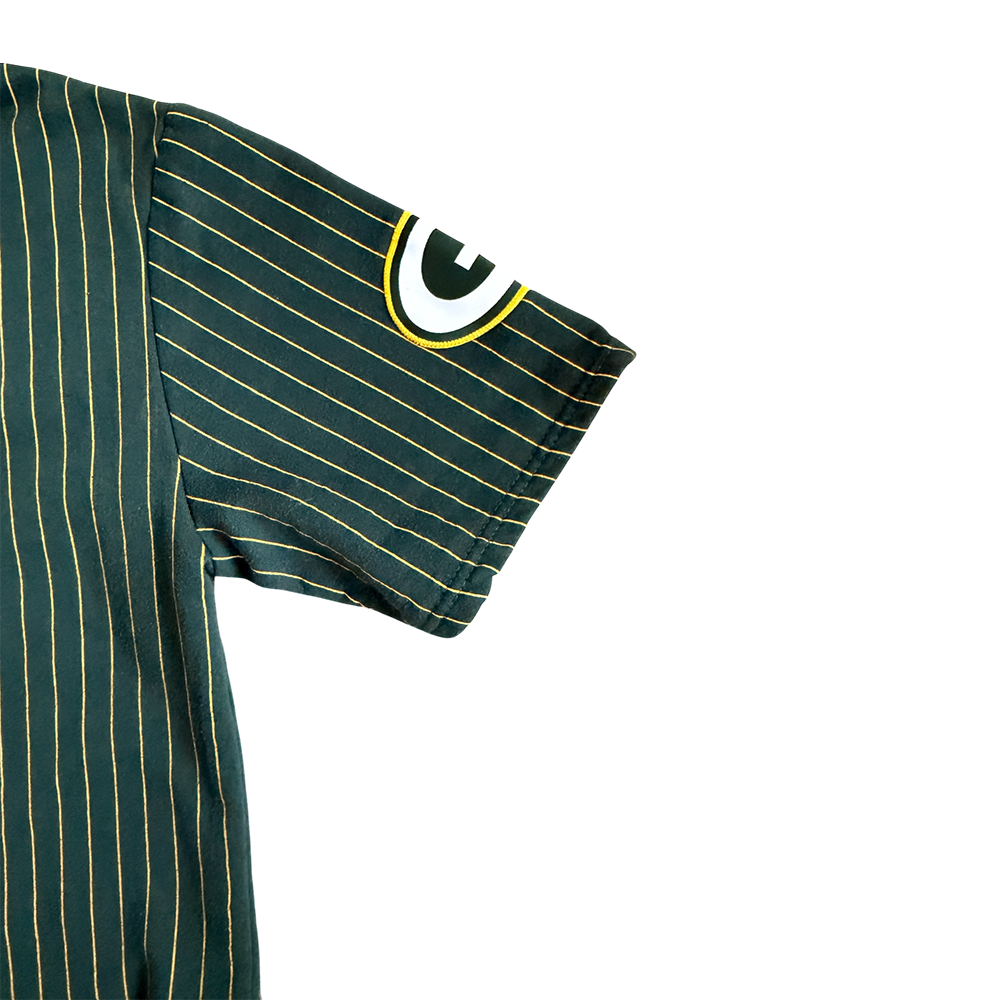 + Original embroidery: "Packers" (gold/white, center), Packers helmet (right sleeve), Packers "G" logo (left sleeve)