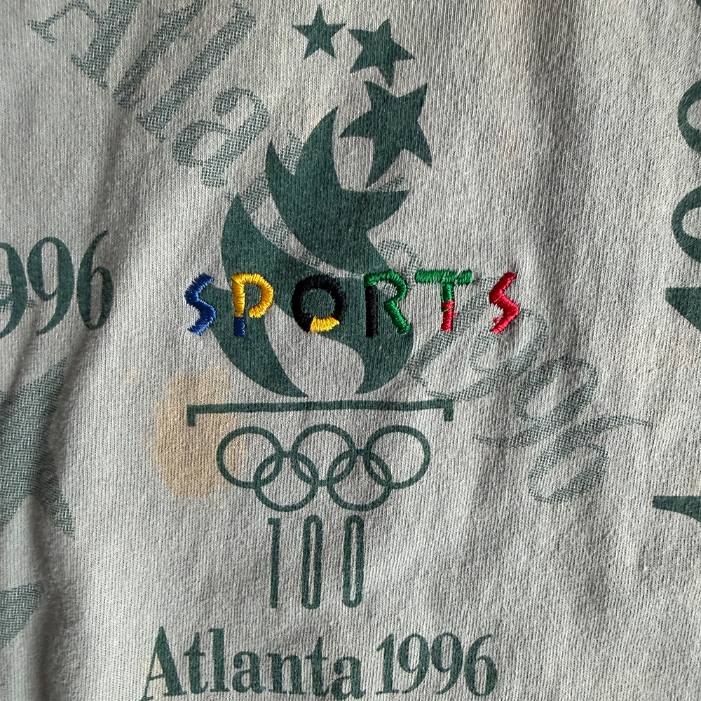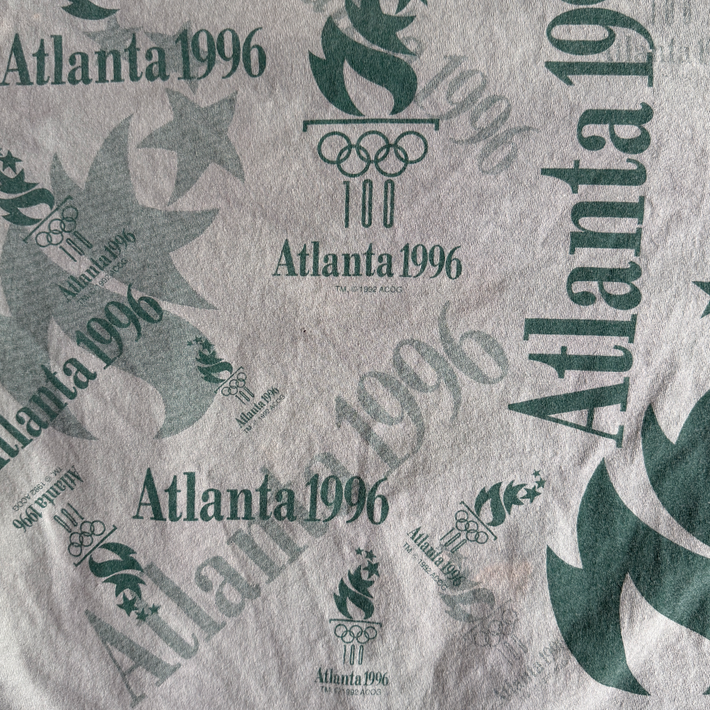 Faded Olive Green Atlanta 1996 100 Year Allover Olympics T-shirt