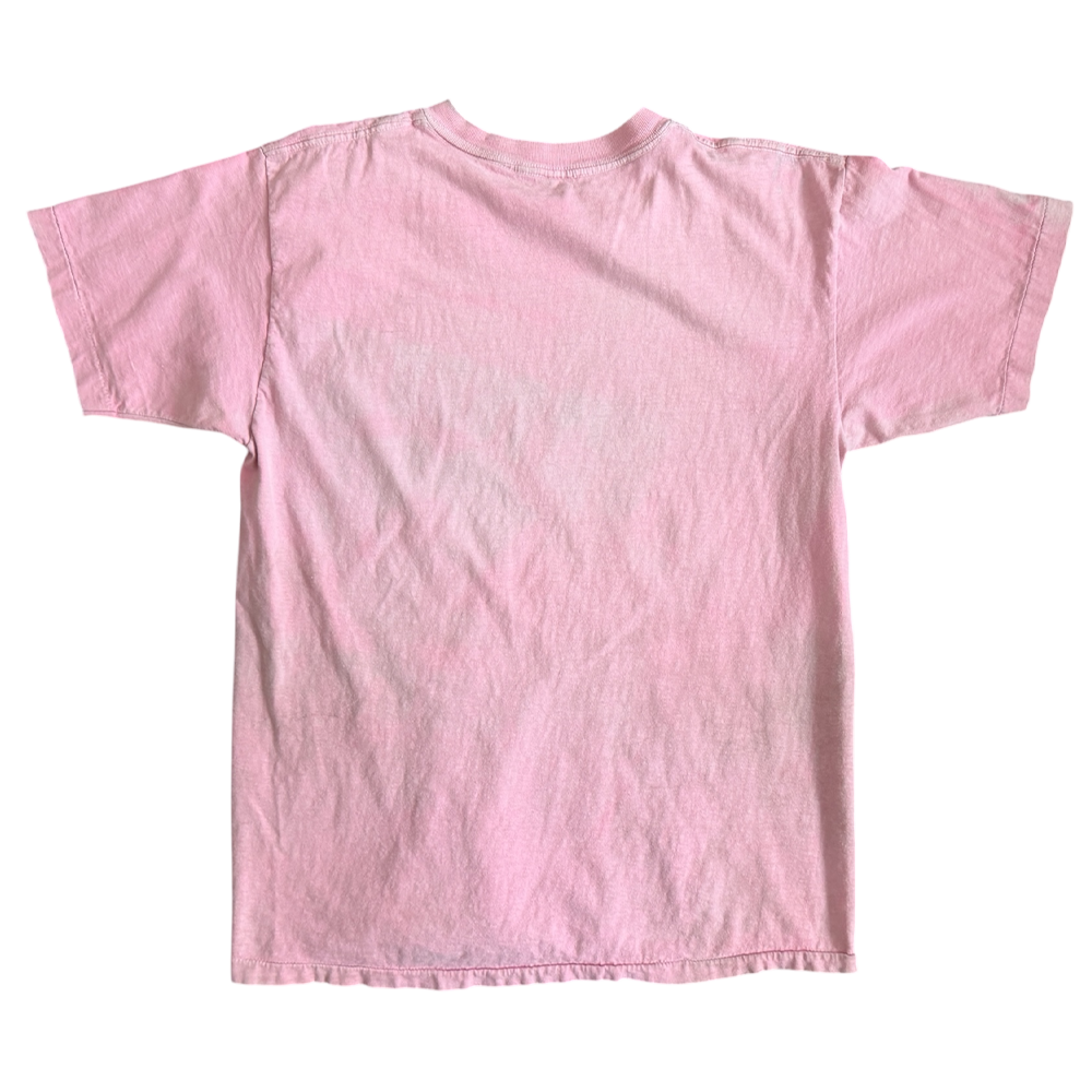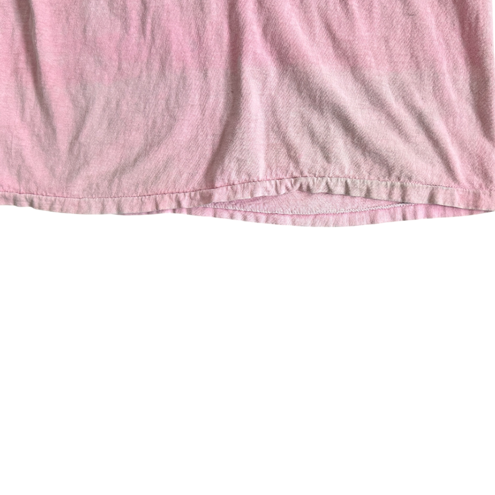 + Sun fading spots throughout t-shirt giving it a very faded pink/white tie-dye appearance